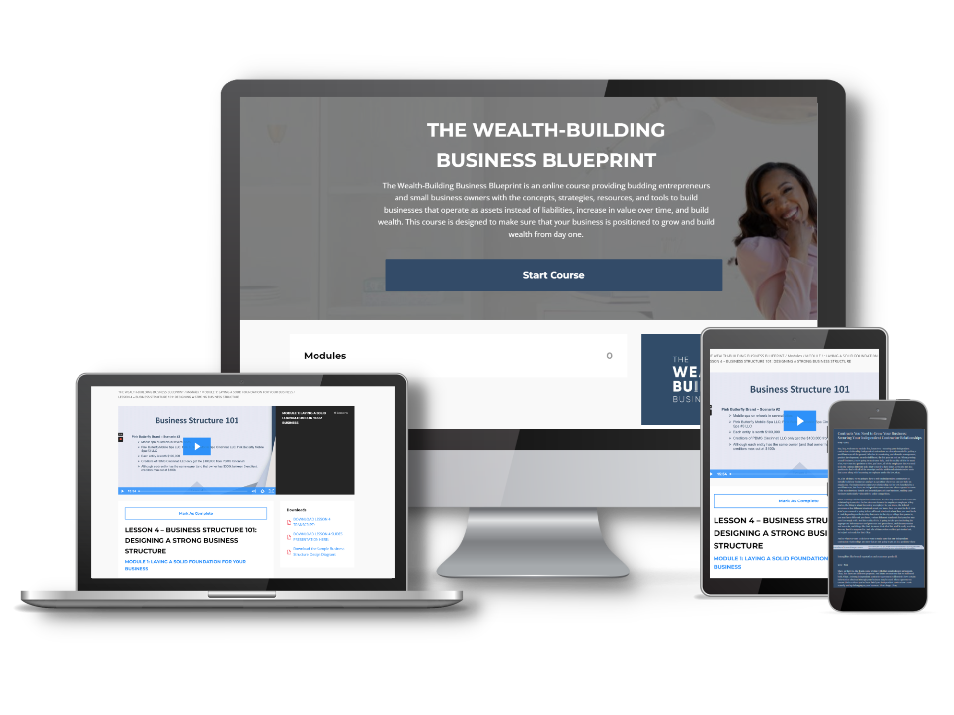 The Wealth-Building Business Blueprint Comes consists of 6 business transforming, easy-to-digest modules and: