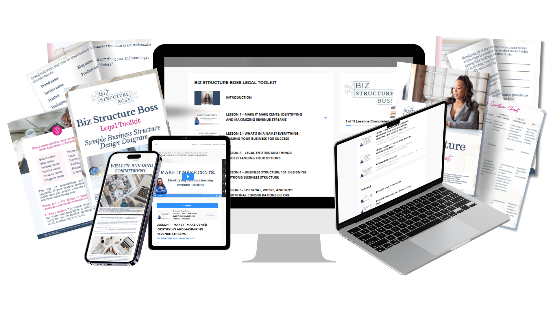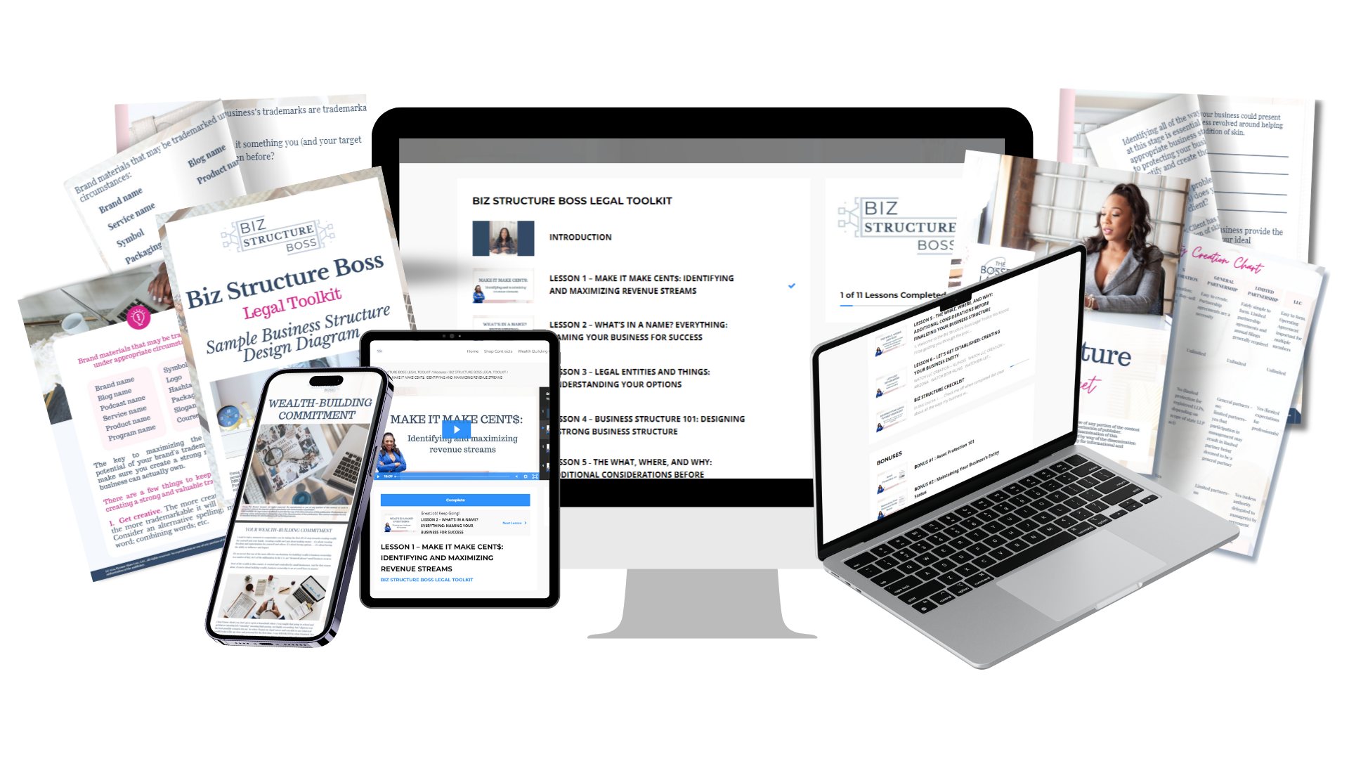 The Biz Structure Boss Legal Toolkit is the cheat code to getting your business legally established, keeping your personal assets secure and maximizing access to funding opportunities... WITHOUT SPENDING HUNDREDS OR EVEN THOUSANDS HIRING AN ATTORNEY TO DO IT FOR YOU!
